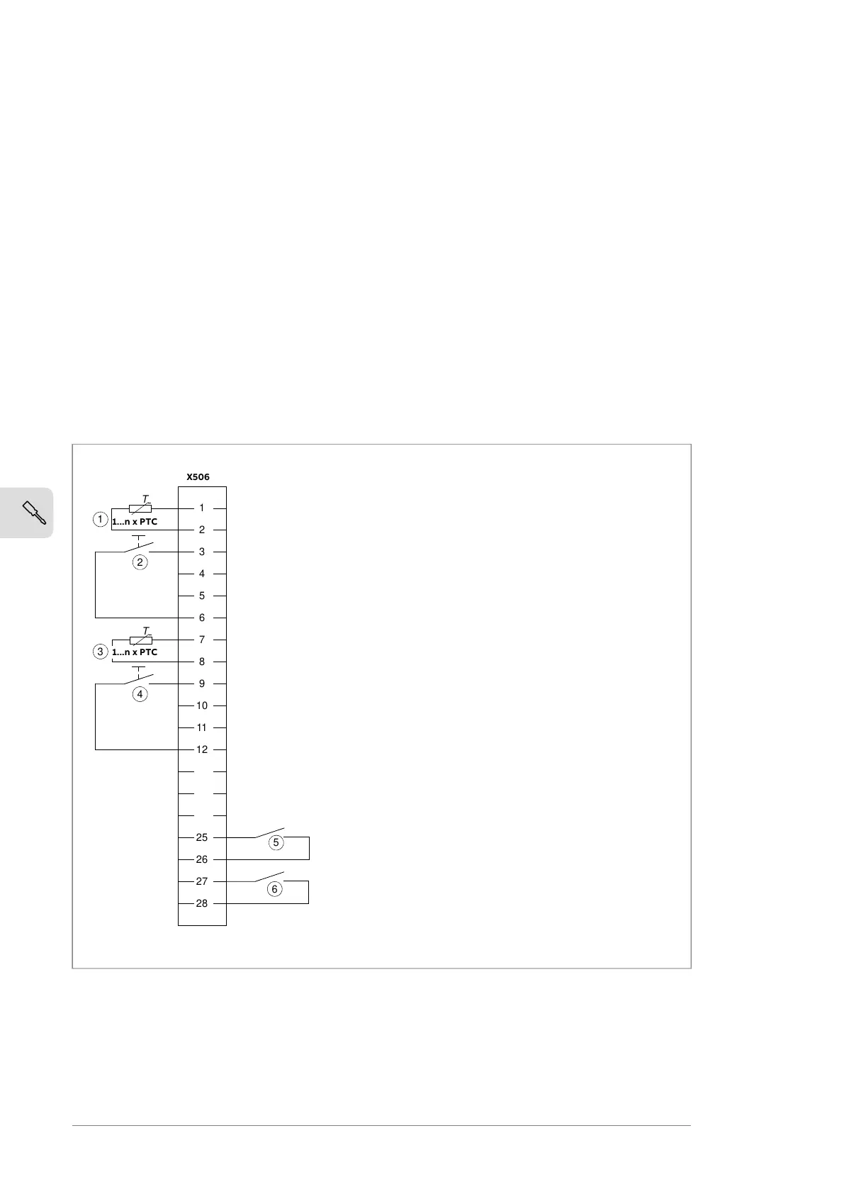 The external wiring of option +2L505 (two thermistor relays) is shown below. For example,