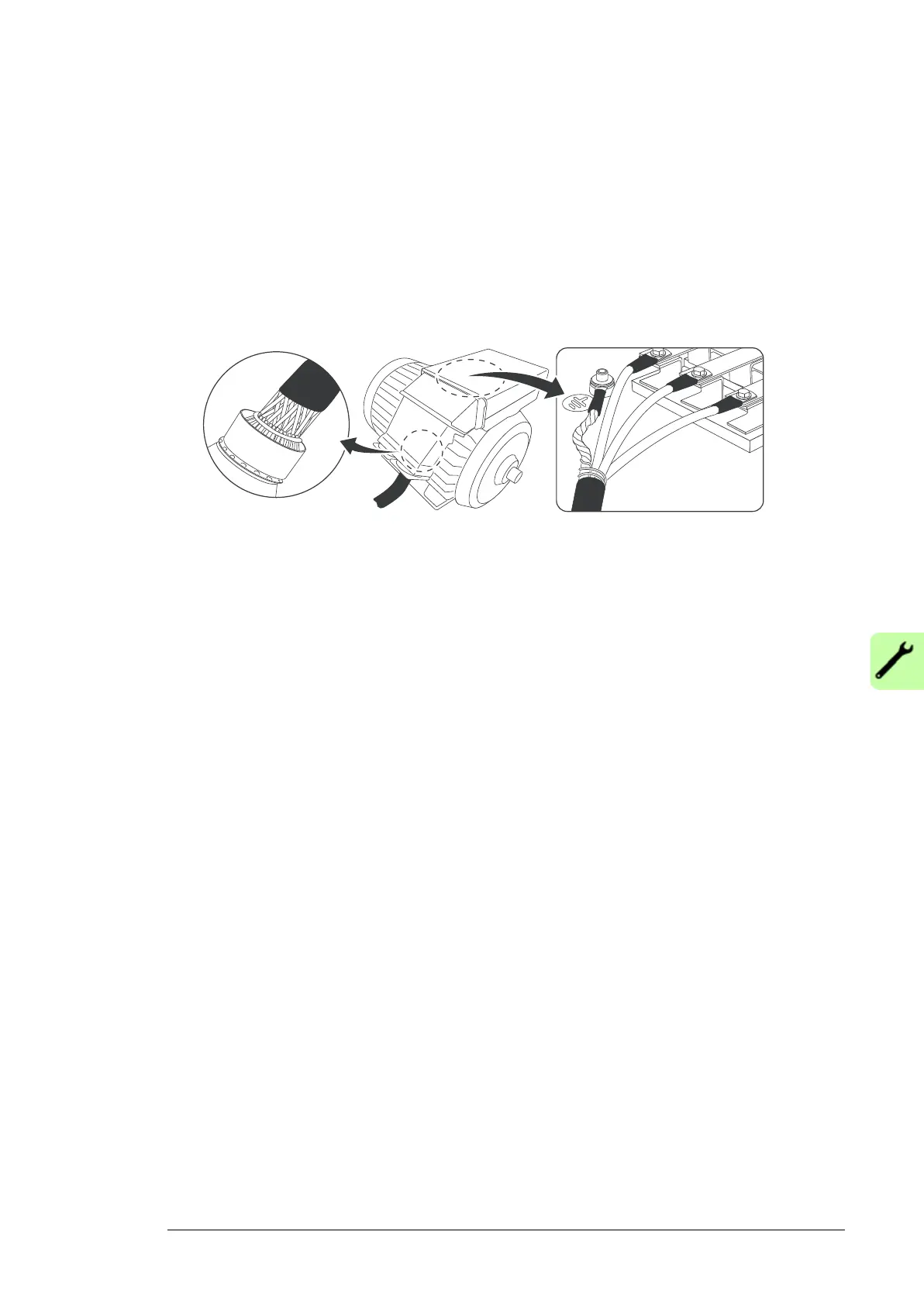 Ground the motor cable shield 360 degrees at the entry of the motor terminal box.