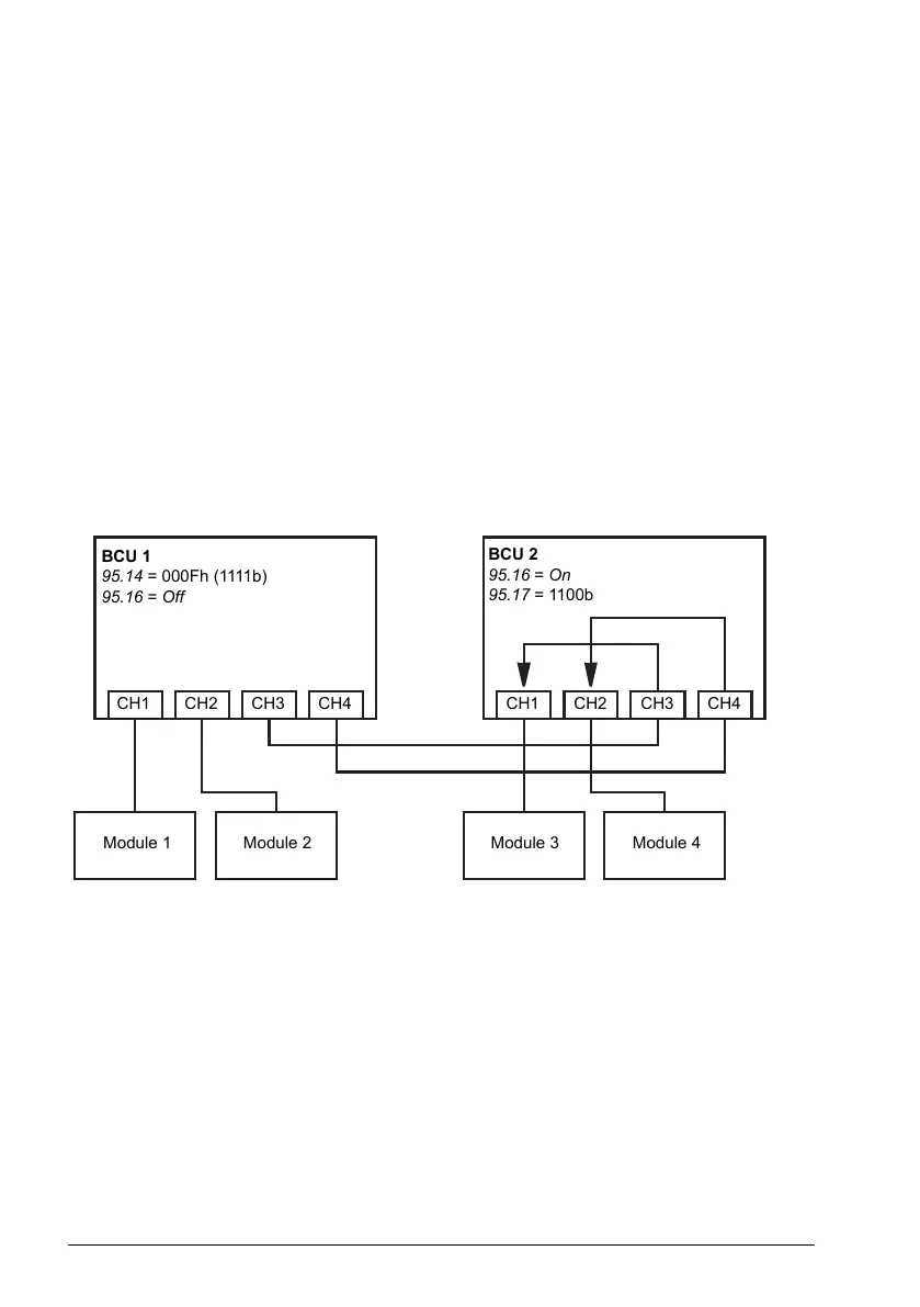 BCU 1 controlling all modules, BCU 2 in router mode