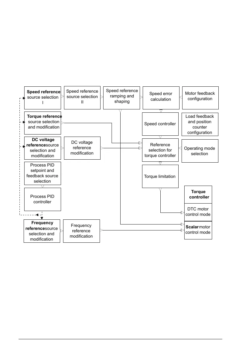 The motor follows a speed reference given to the drive. This mode can be used either