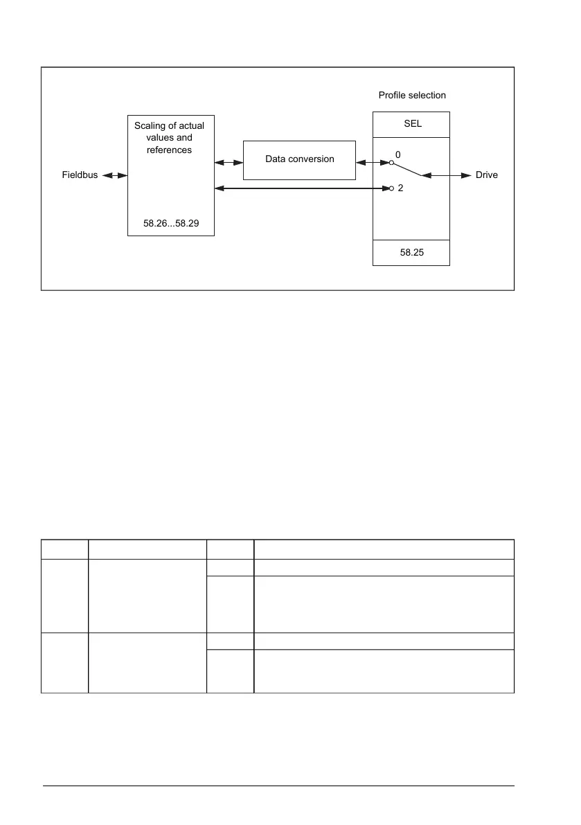 Control profile selection with parameter 58.25 Control profile: