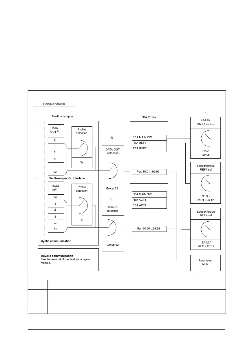controller to the drive is defined by parameters 53.1 FBA data out1 ... 53.12 FBA data