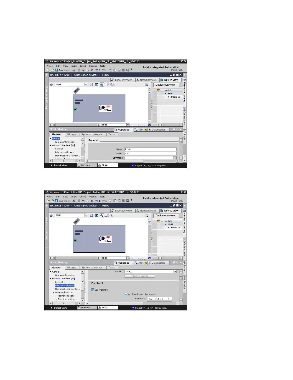 4. Select the ABB drive (FENA) and click Device view to configure PROFNET IP address and