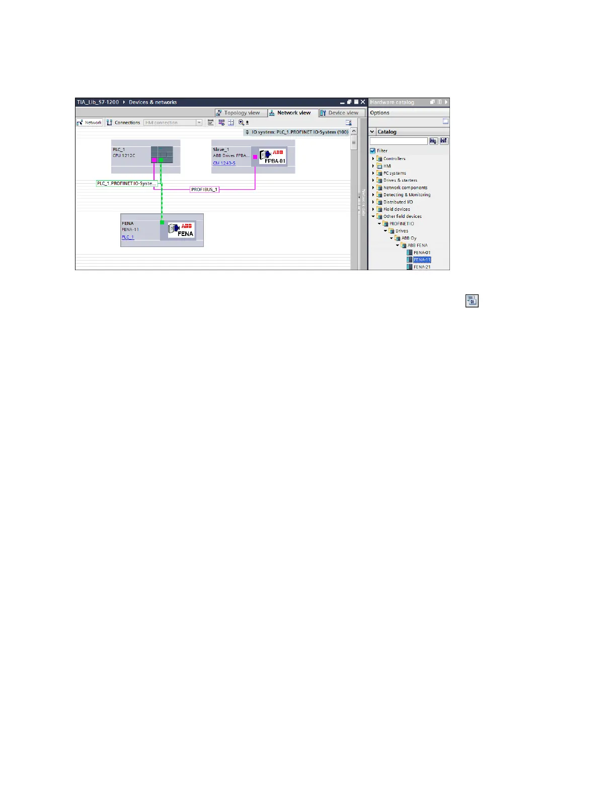 The selected PLC is assigned to the ABB drive.