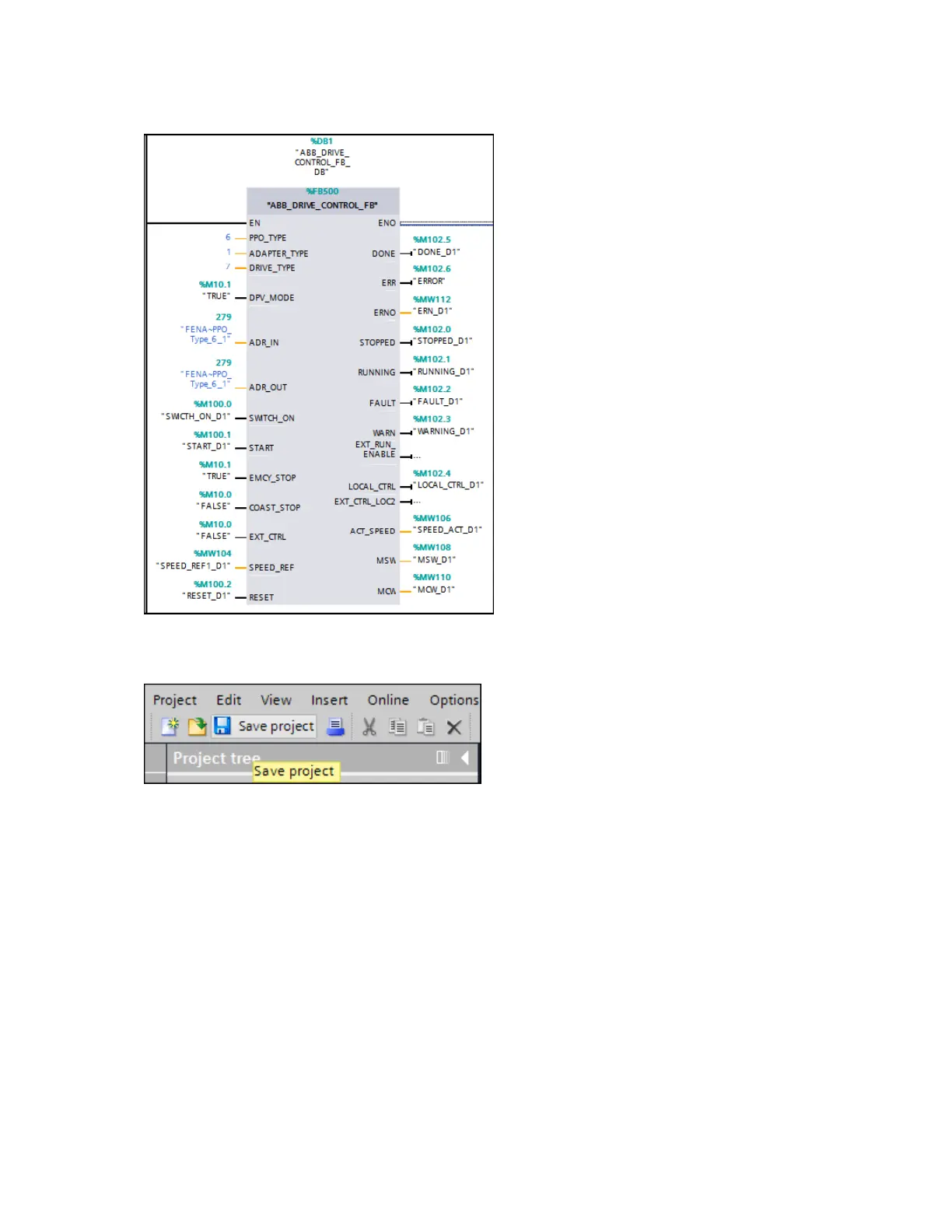Example 2: The Instance Data Block of FB500 ABB_DRIVE_CONTROL_FB has been named