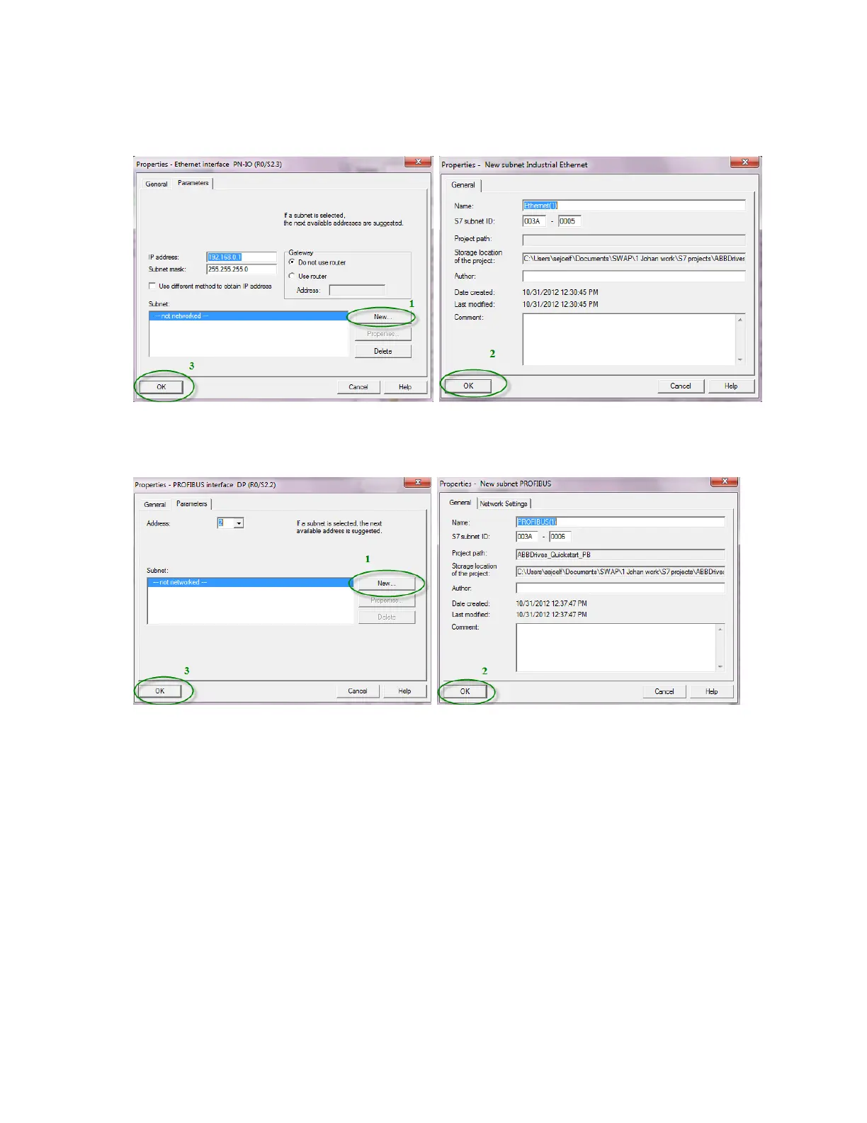 If the PROFIBUS interface window pops up, press New (1) and then click OK (2) → OK (3) to