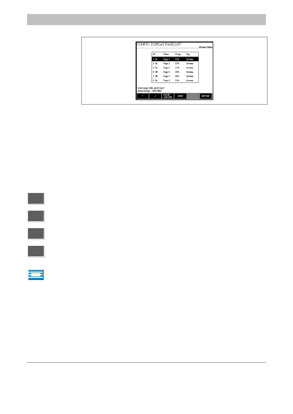 The PAGE ON/OFF softkey toggles the selected screen page on or off.
