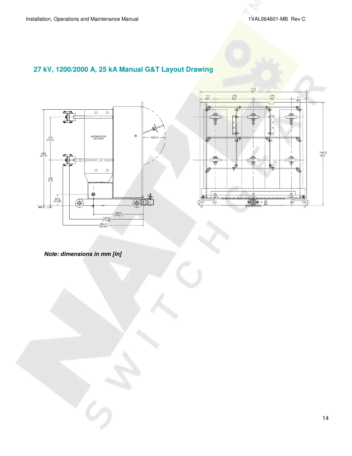 27 kV, 1200/2000 A, 25 kA Manual G&T Layout Drawing