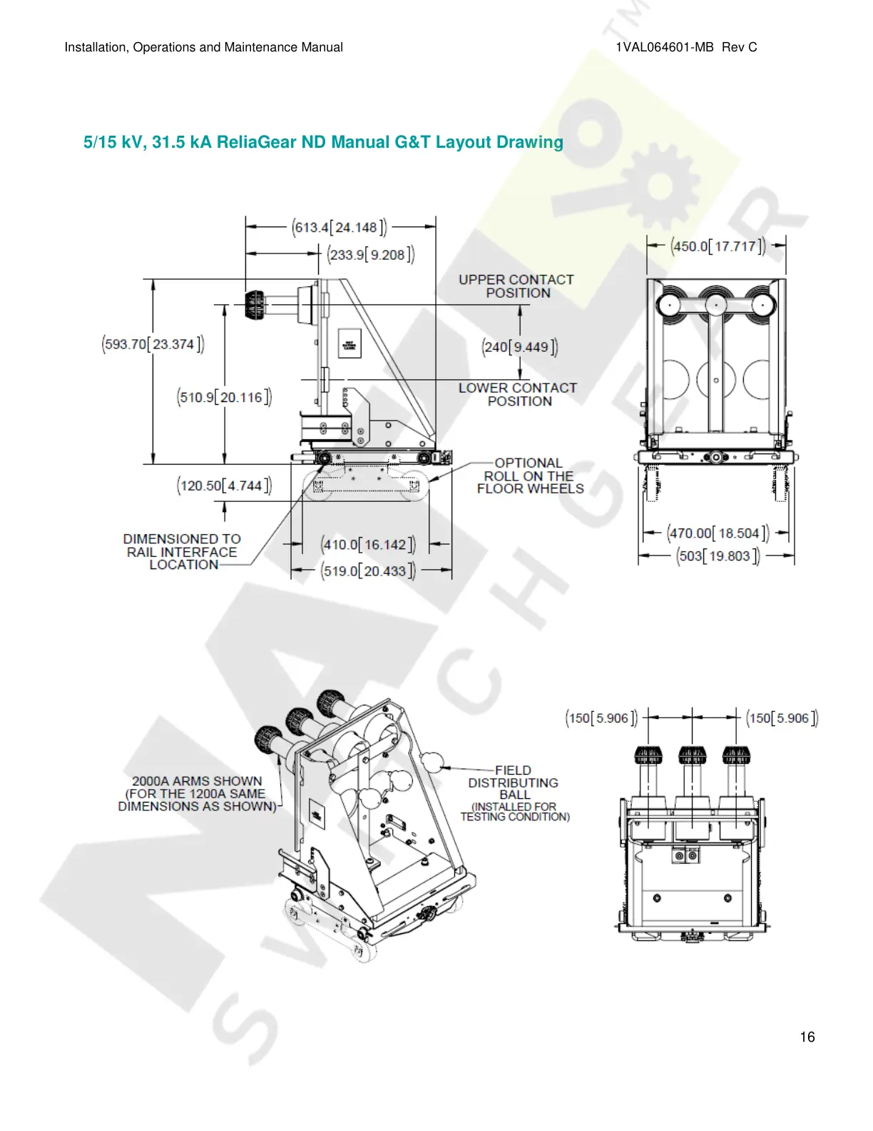 5/15 kV, 31.5 kA ReliaGear ND Manual G&T Layout Drawing
