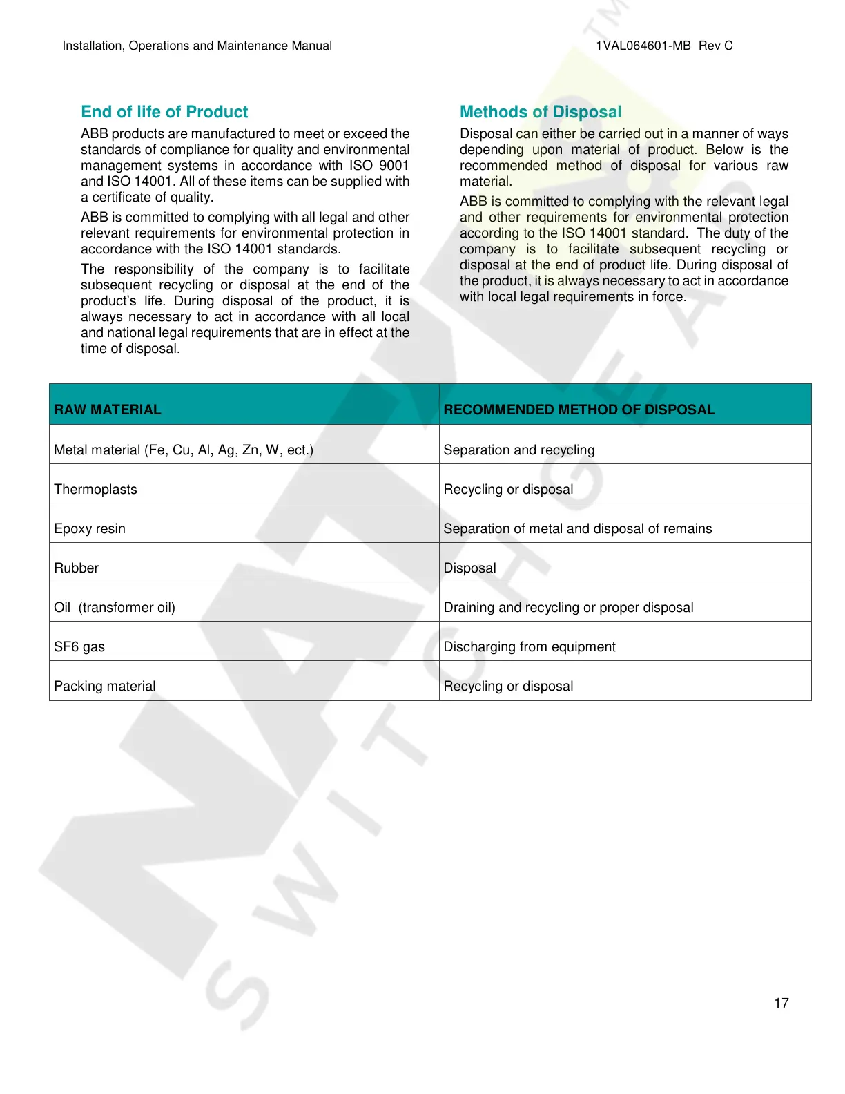 ABB products are manufactured to meet or exceed the