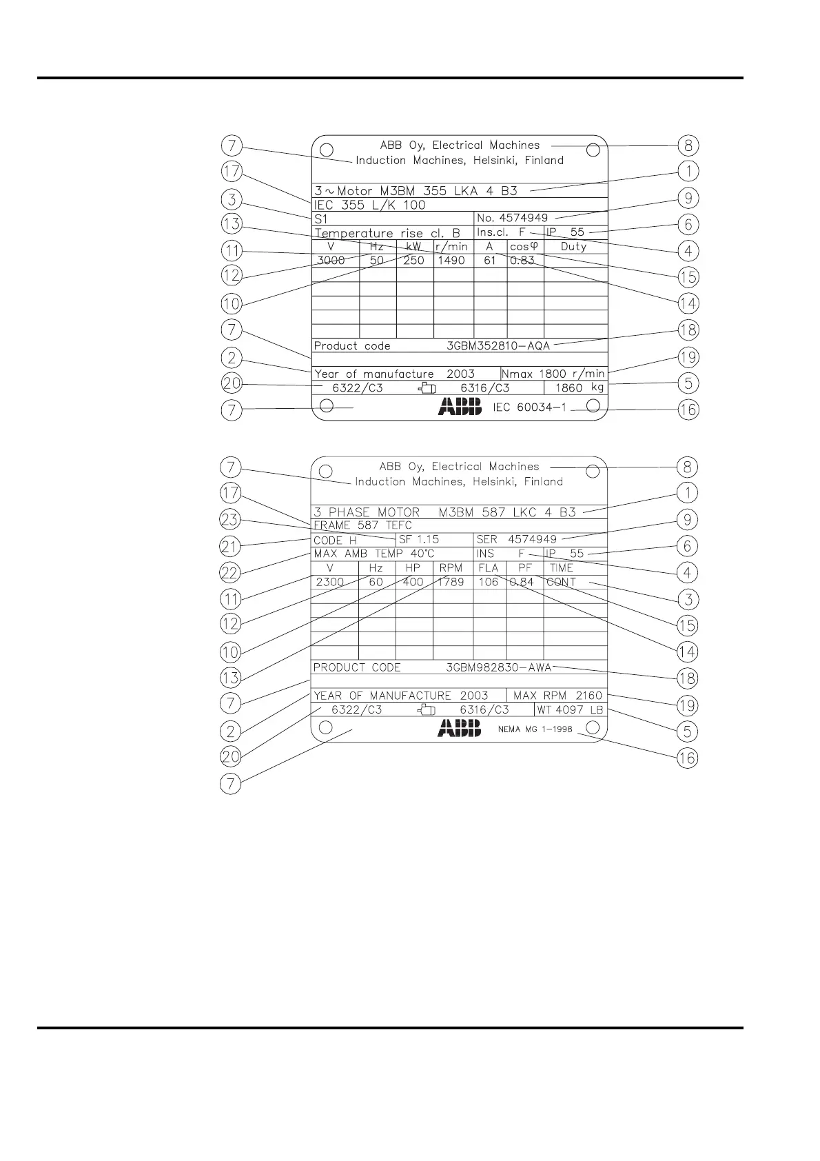 Figure 1-1 Rating plate for direct on line machines manufactured according to IEC