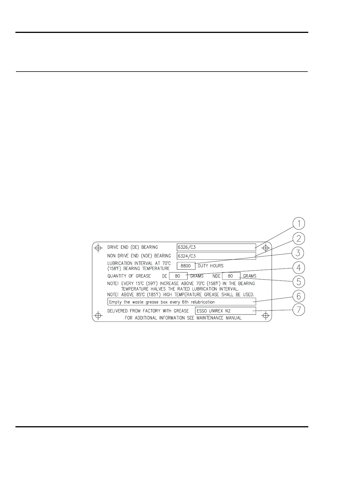 • Ball and roller bearings are greased with lubricant indicated on the bearing plate, which is