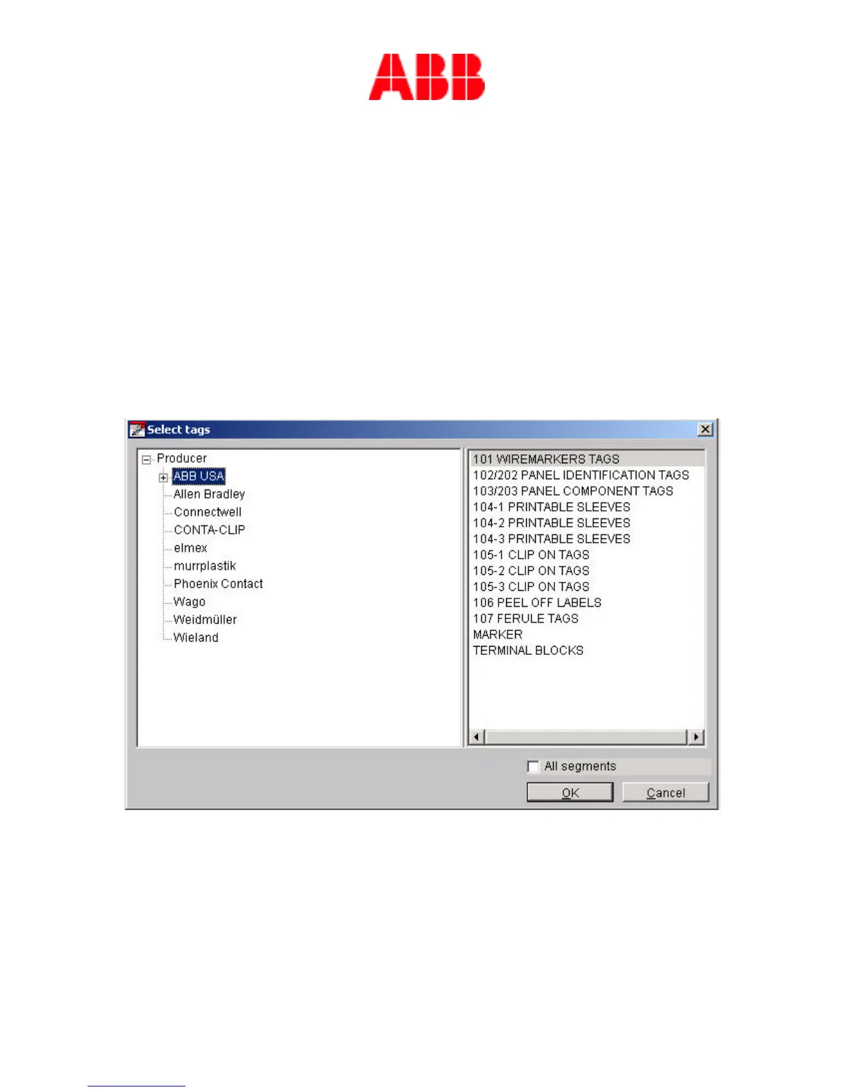other manufacturers are optional and the ABB Absolute Marking System administrator will