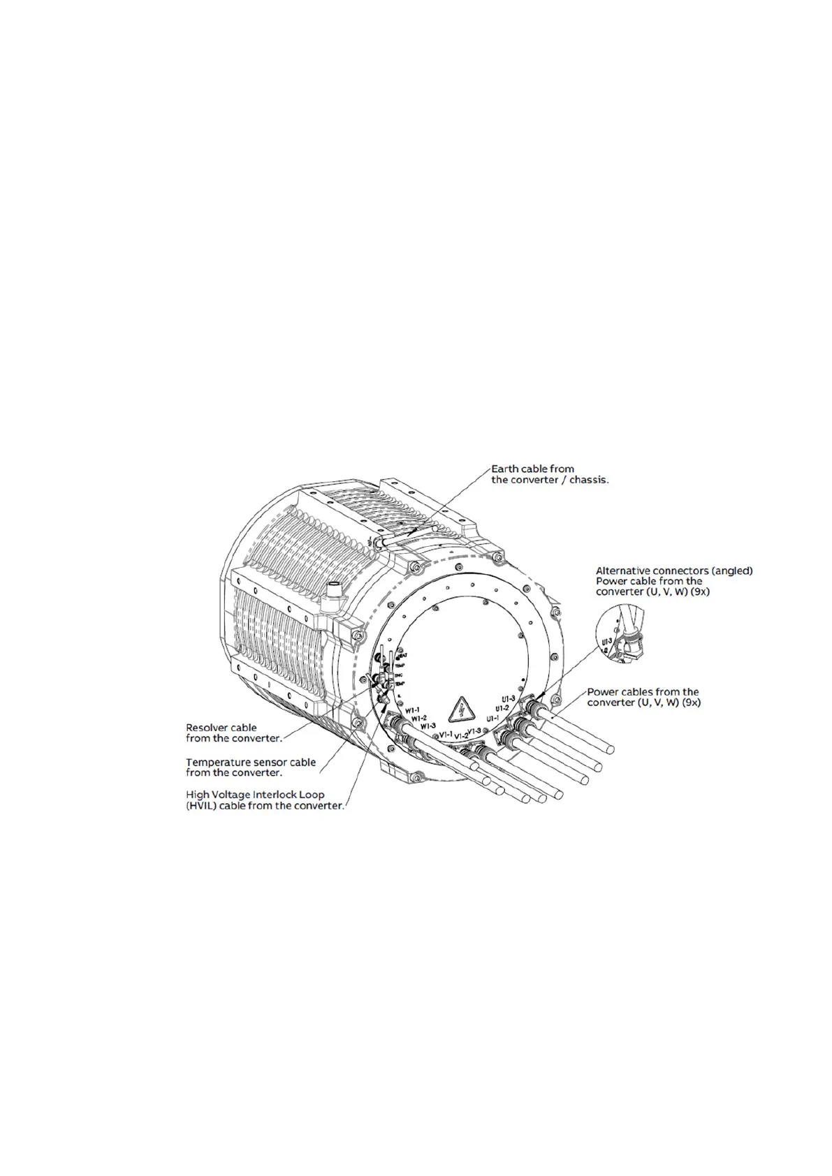 currents. There are three power connectors for each phase (U, V, W). All nine power connectors must be