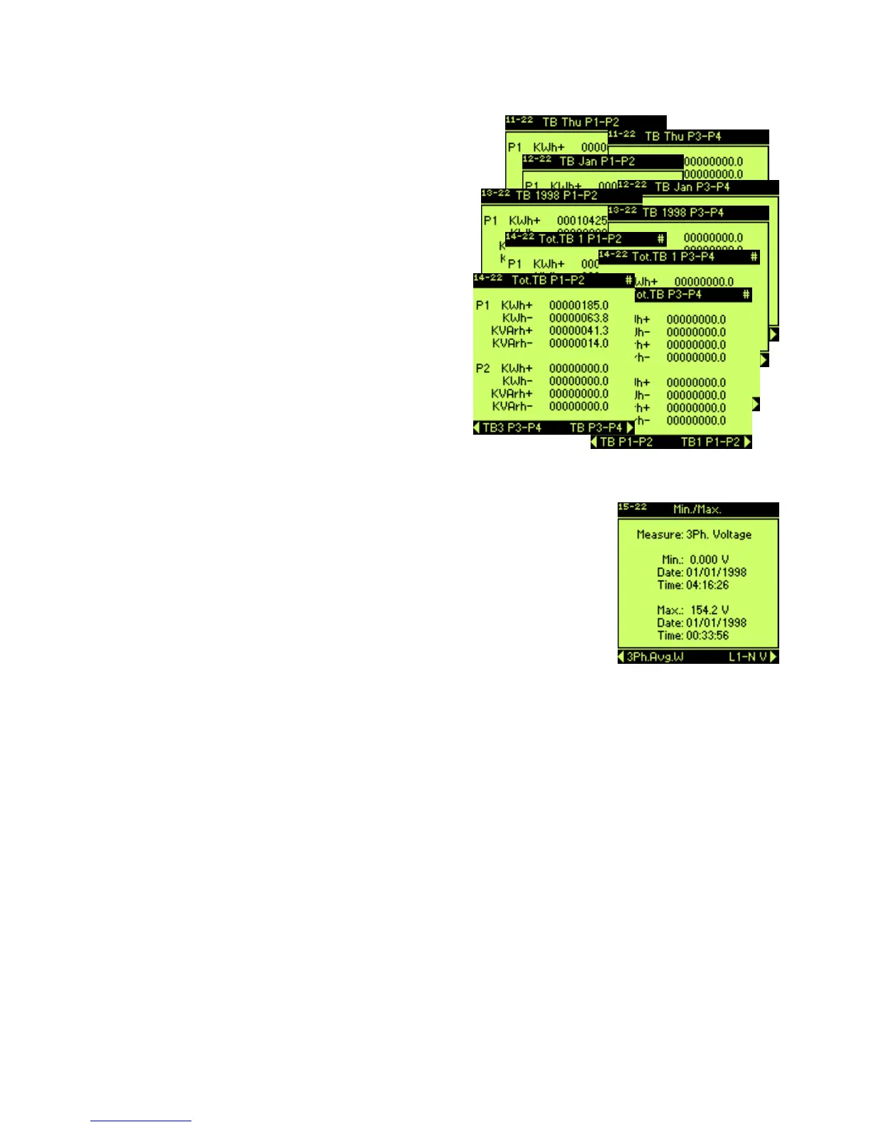 parameters taken after last reset. Date and time of reading are displayed on these pages.