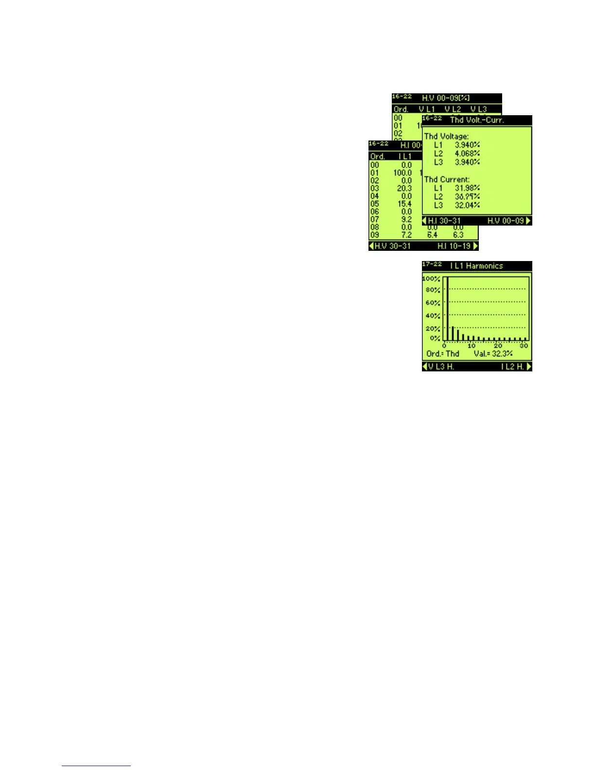 Note: These pages are displayed only if the option HARMONICS is activated with the ACCESS code