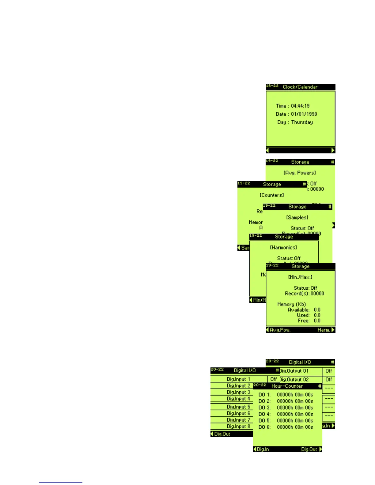 5 pages (selectable with “LEFT” and “RIGHT” keys) of information on