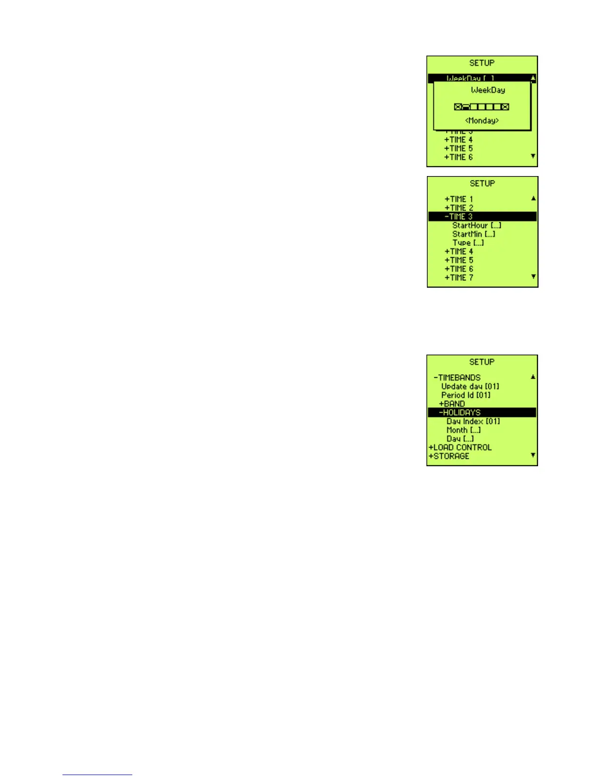 • Day Index, allows to set 52 different days like holidays. After the index,