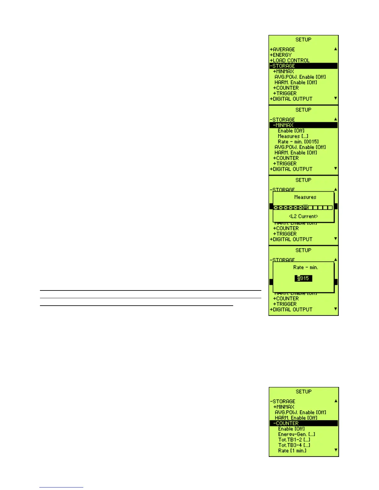 ENERGY-Gen., allows the selection of generic and energy counters to store. Use the “right” and