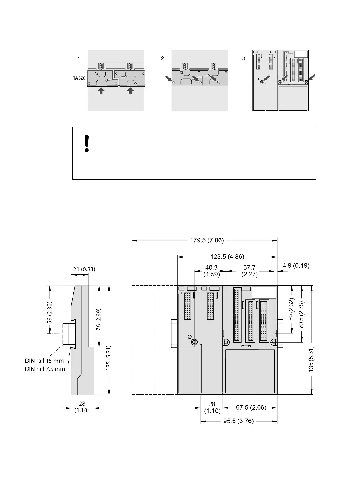 1. TA526 are snapped on the rear side of the module like DIN rails. One TA526 is turned by
