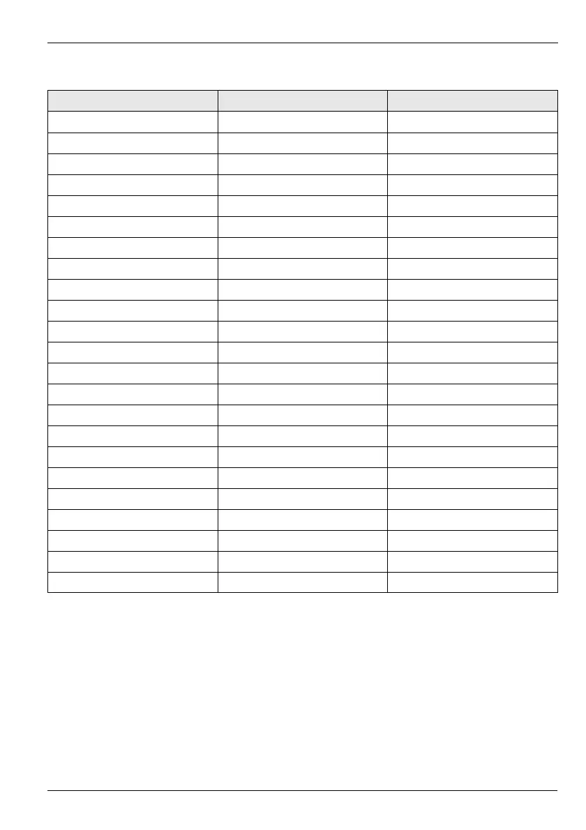 Default Settings Table