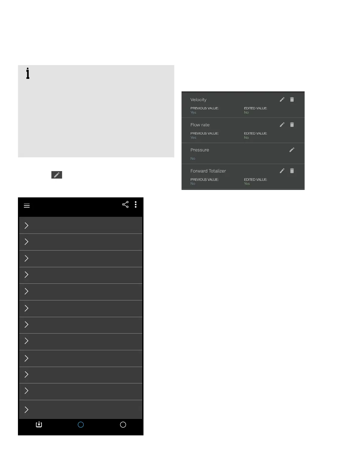 • To edit values in the device, make changes in the