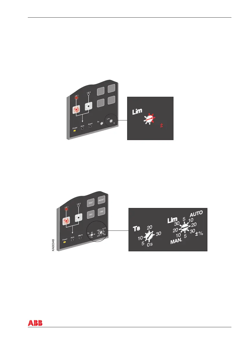The operating mode and the voltage threshold are selected simultaneously by setting the Lim rotary
