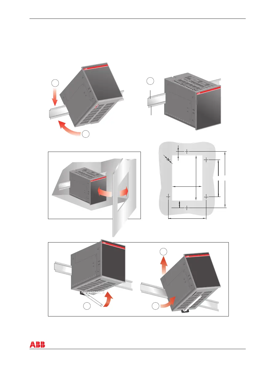 The automatic transfer switch ATS021 can be mounted on the 35 mm DIN-rail, see the Figure 5.4. Door