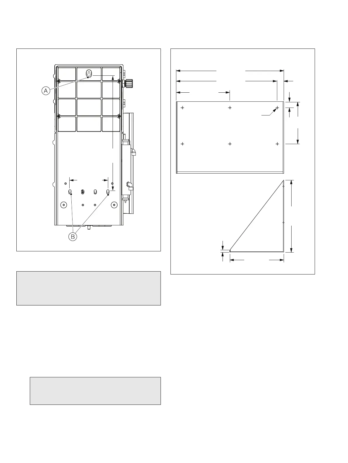 5. Secure the analyzer to the wall using 2 fixings B.