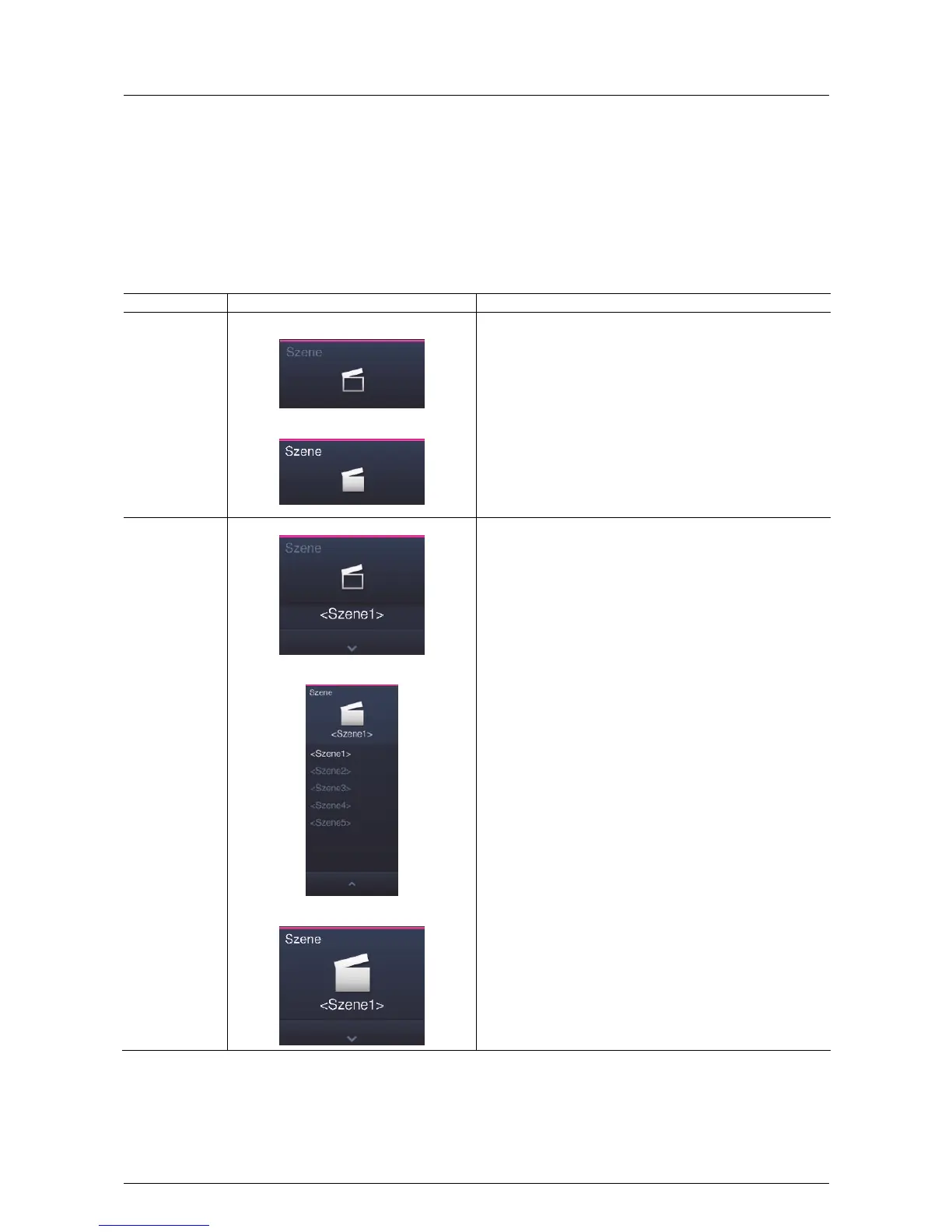 With the "Scene" control element the user can call up so-called scenes or sequences.