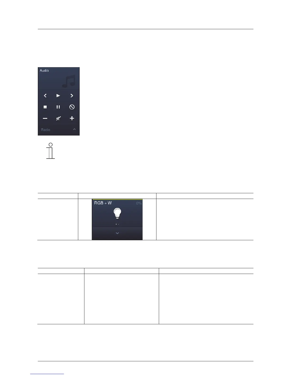RGB control elements can be used to define specific settings for related lamps (LEDs, Philips Hue, etc.). For