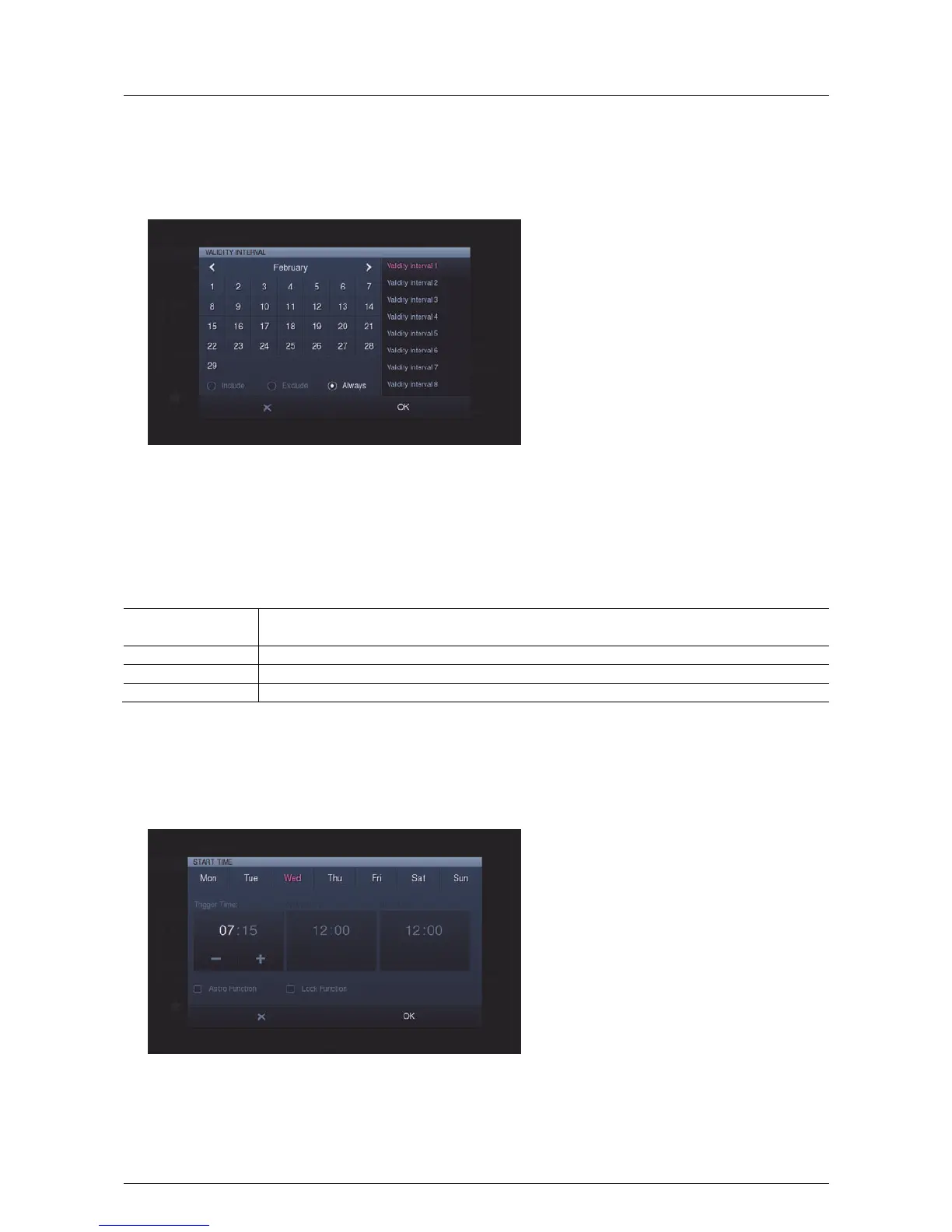 Exclude Outside the marked days: The weekly program is suspended during the marked days.