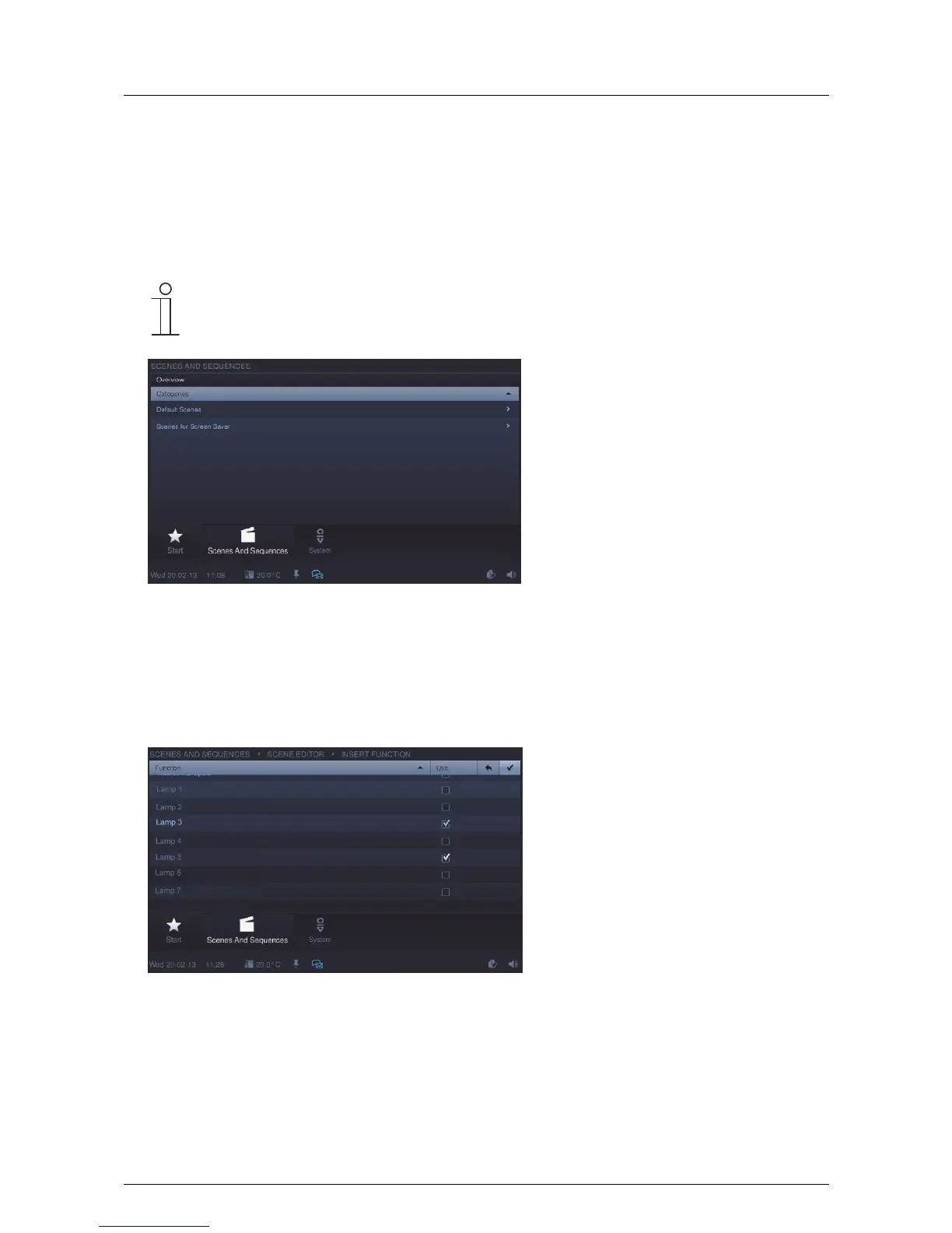 Press the "Scenes and sequences" icon in the navigation bar to access the function. The function can also be