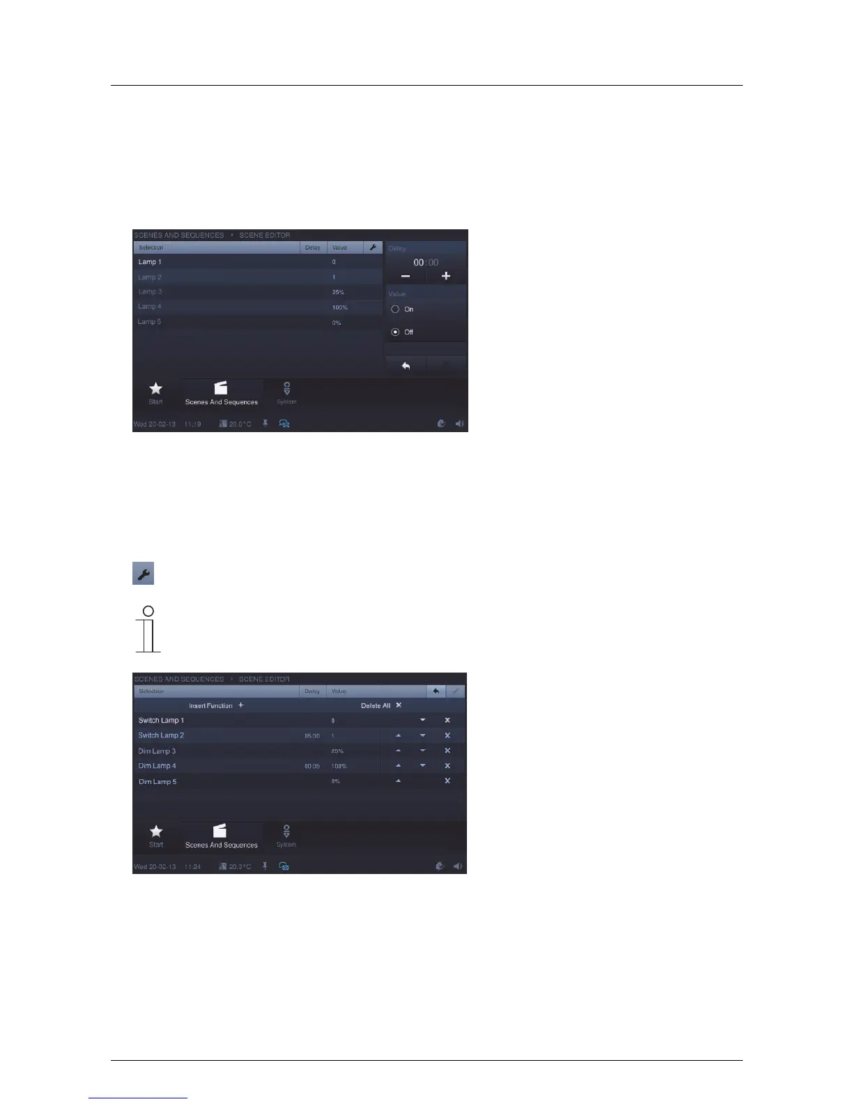The scene can now be started with the aid of the control element (see section "Control elements").