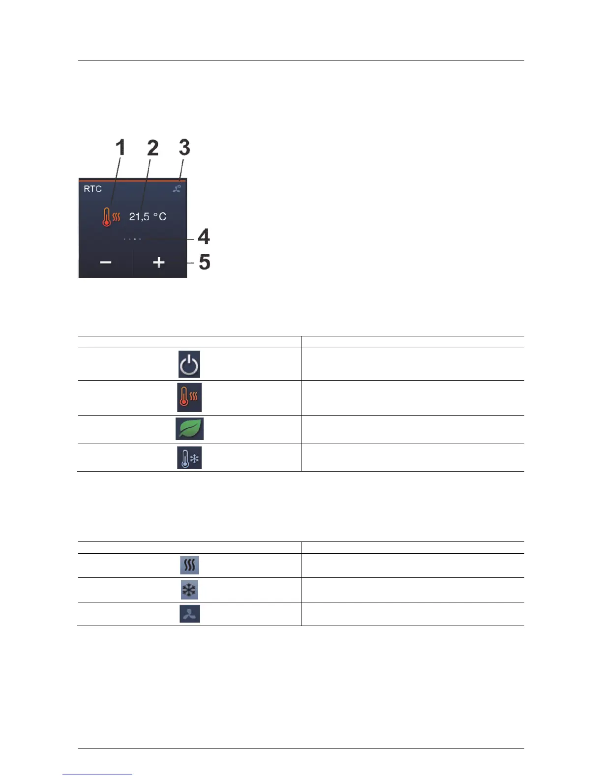 1 Operating modes | 2 Set set-point temperature | 3 Operating buttons | 4 Display of modes |