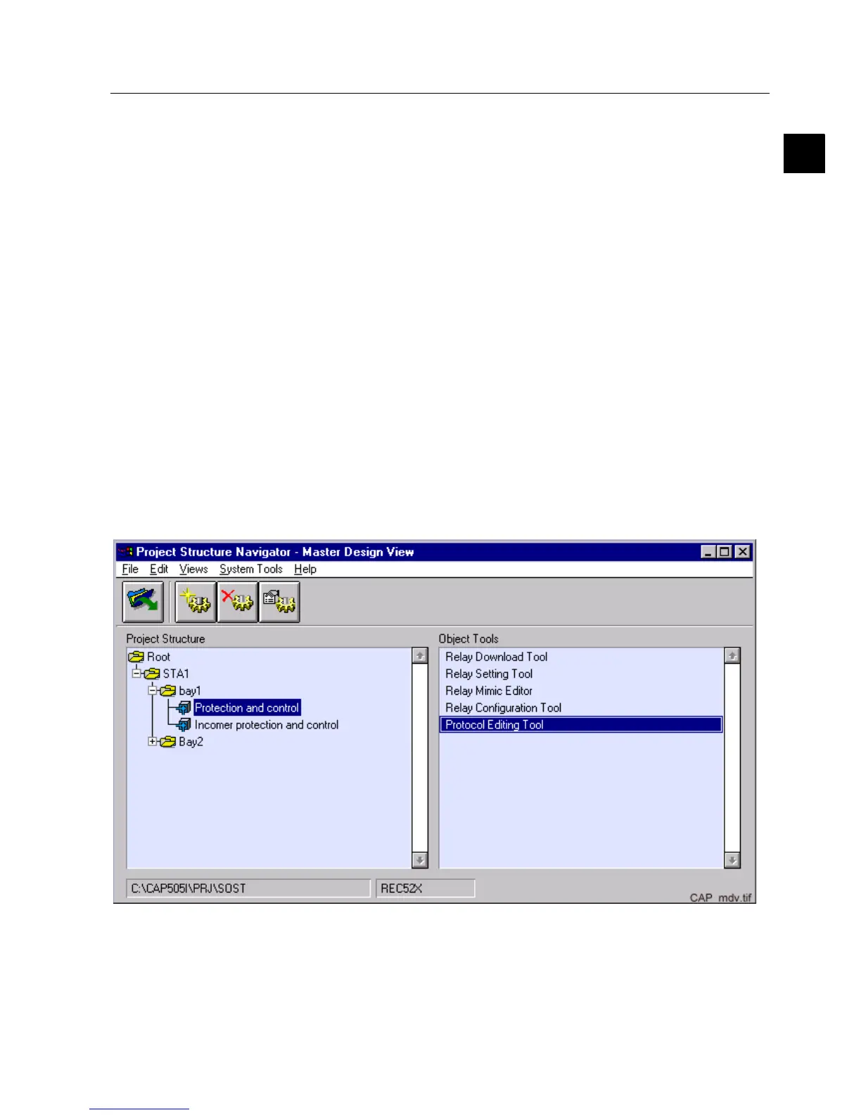 The Protocol Editing Tool is started from the Project Navigator in CAP 505 (see