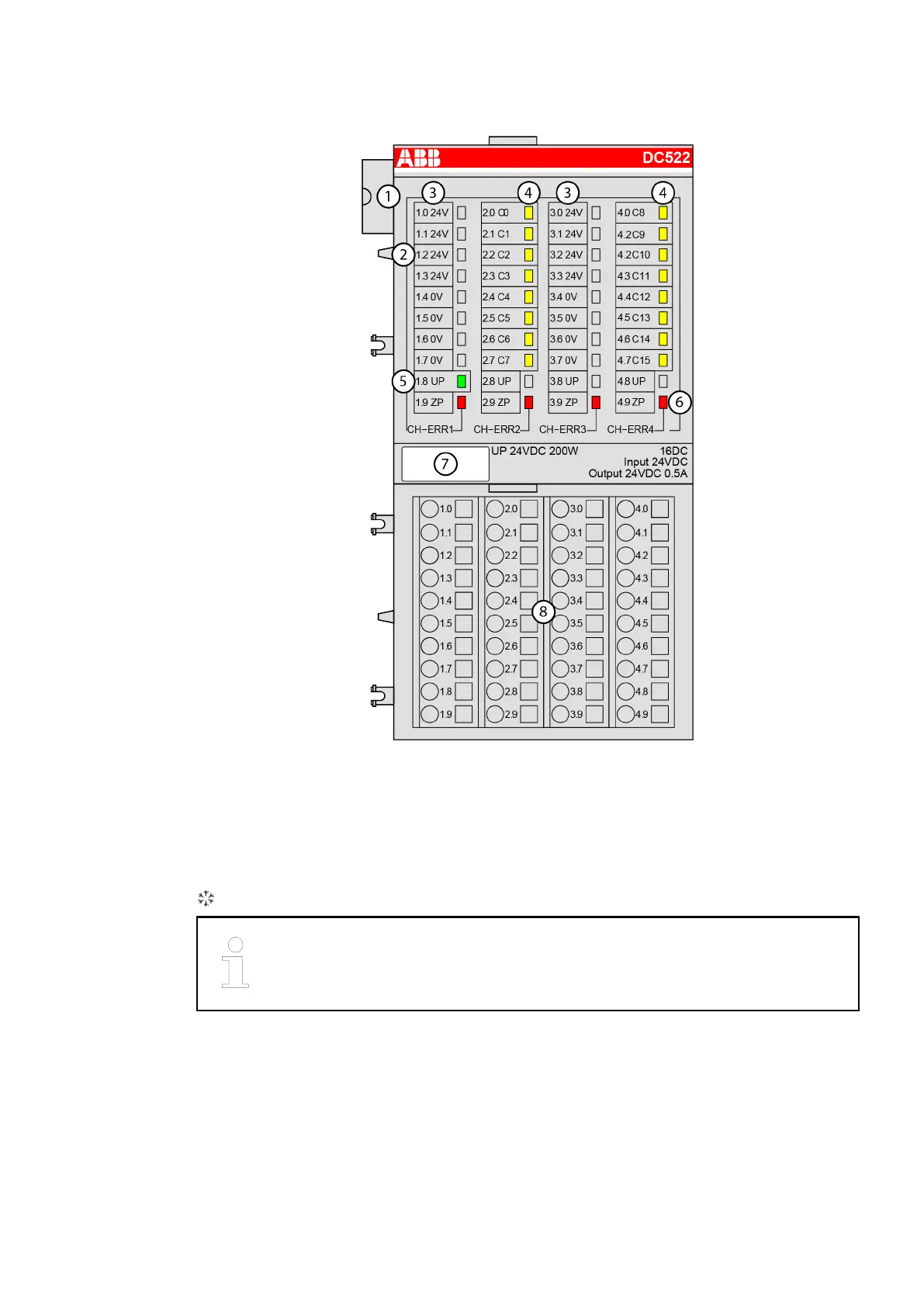 4 16 yellow LEDs to display the signal states at the digital inputs/outputs (C0 - C15)