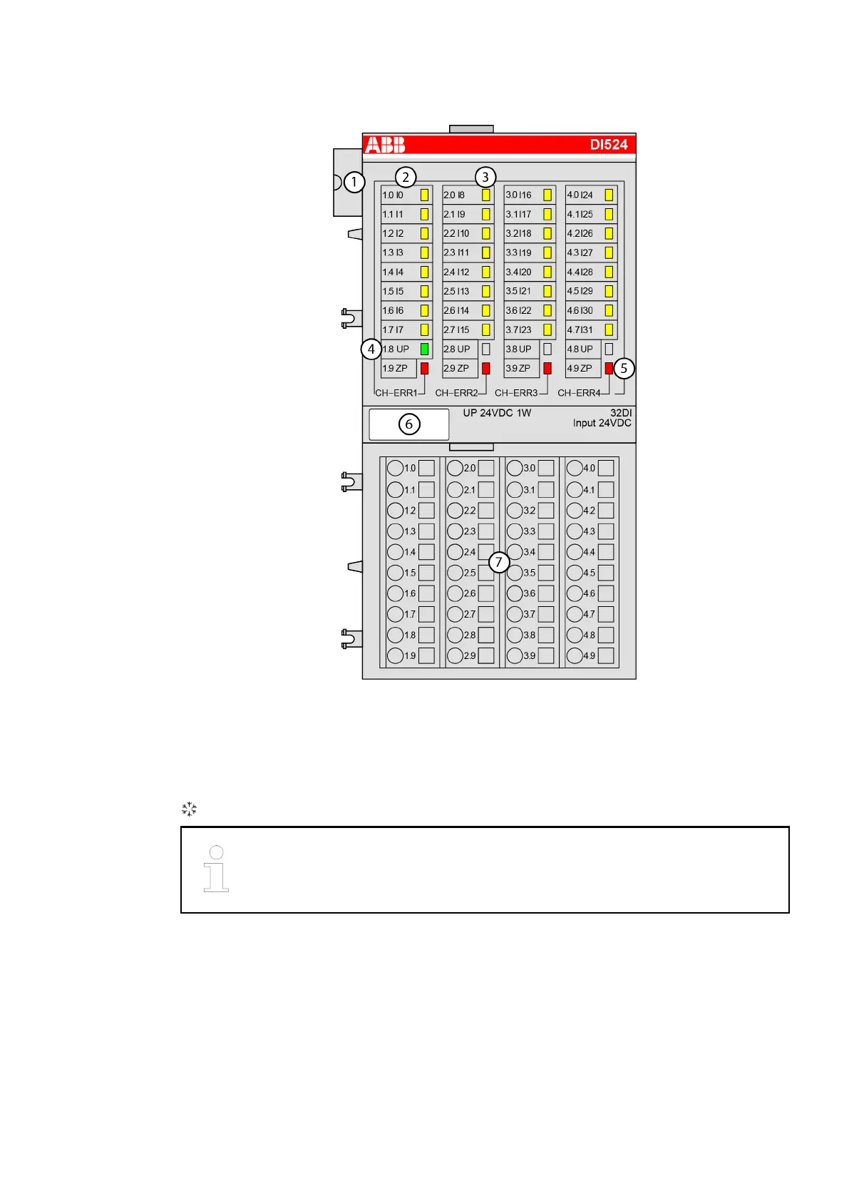 3 32 yellow LEDs to display the signal states at the digital inputs I0 to I31