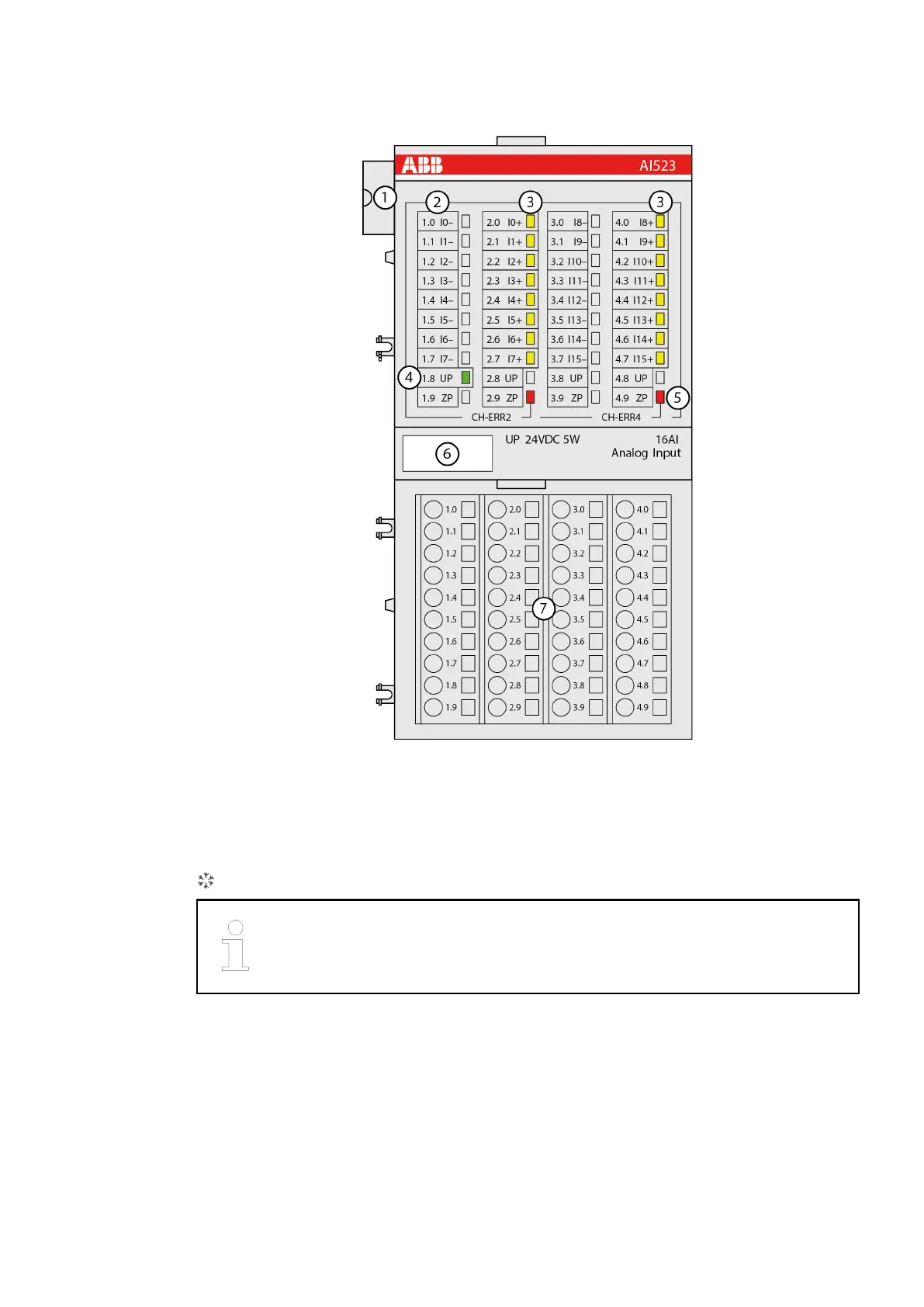 3 16 yellow LEDs to display the signal states at the analog inputs (I0 - I15)