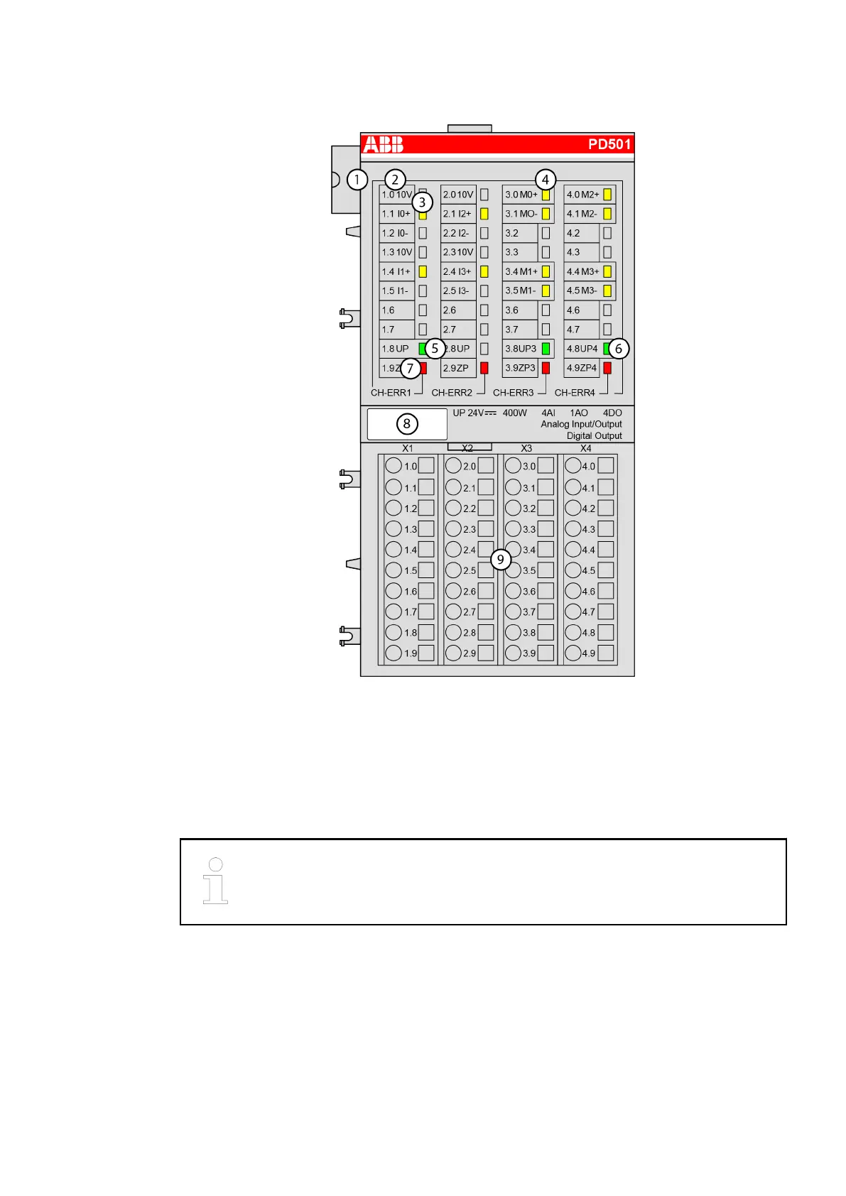 3 4 yellow LEDs to display the signal states of the analog inputs I0 to I3
