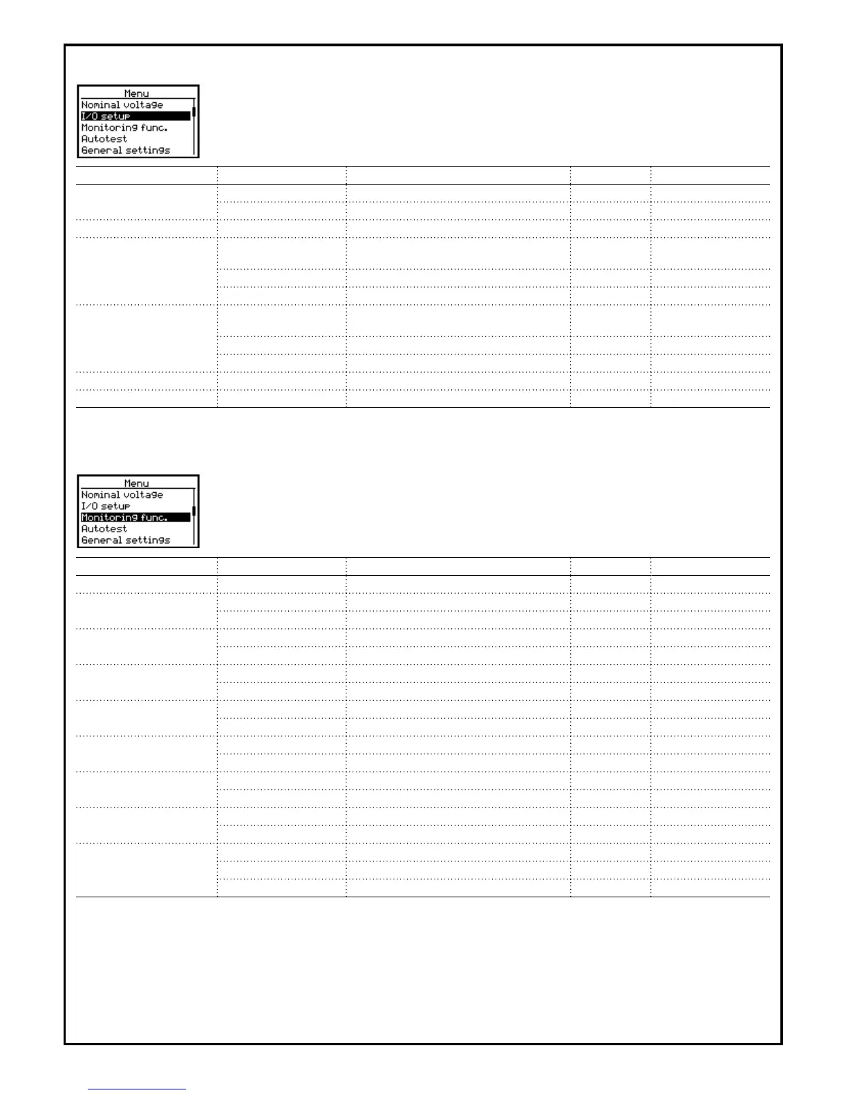 Submenu: Monitoring functions