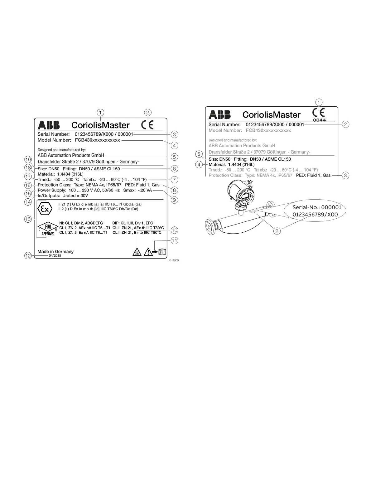 The marking is provided on the name plate and on the sensor