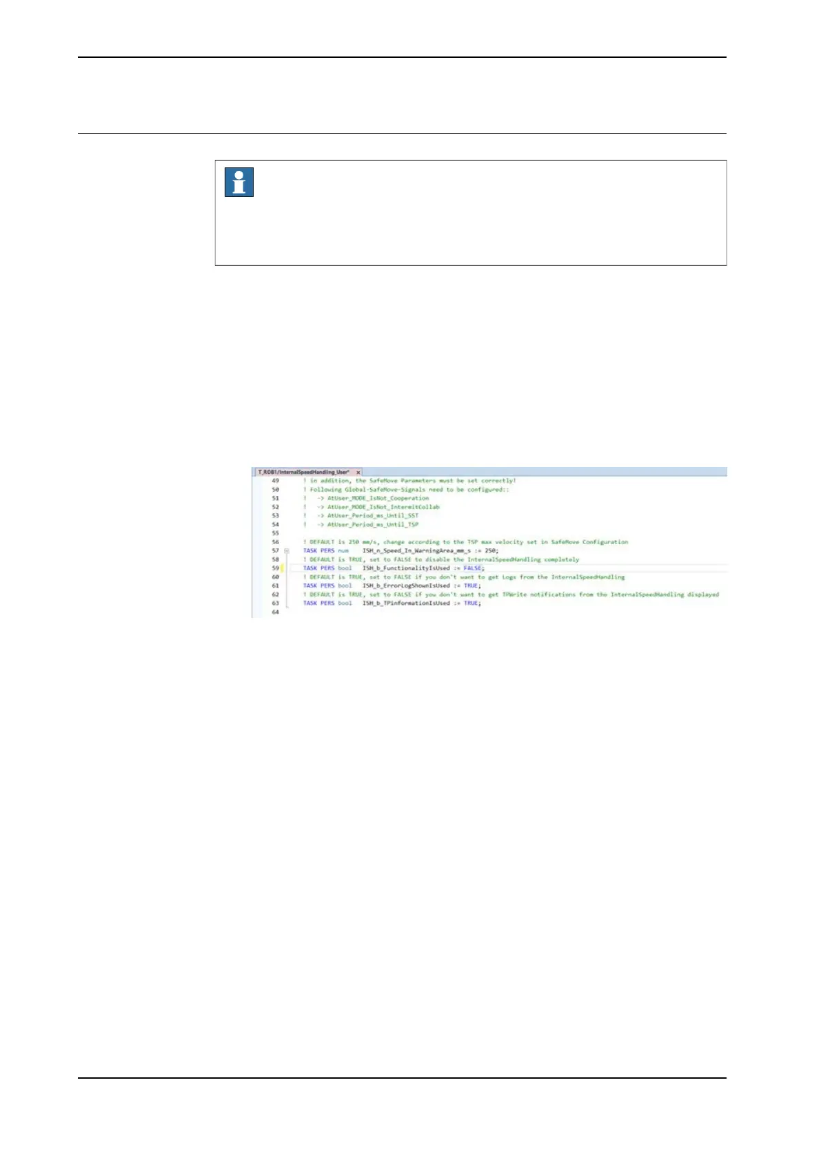 1 In RobotStudio, open the RAPID program InternalSpeedHandling_User in