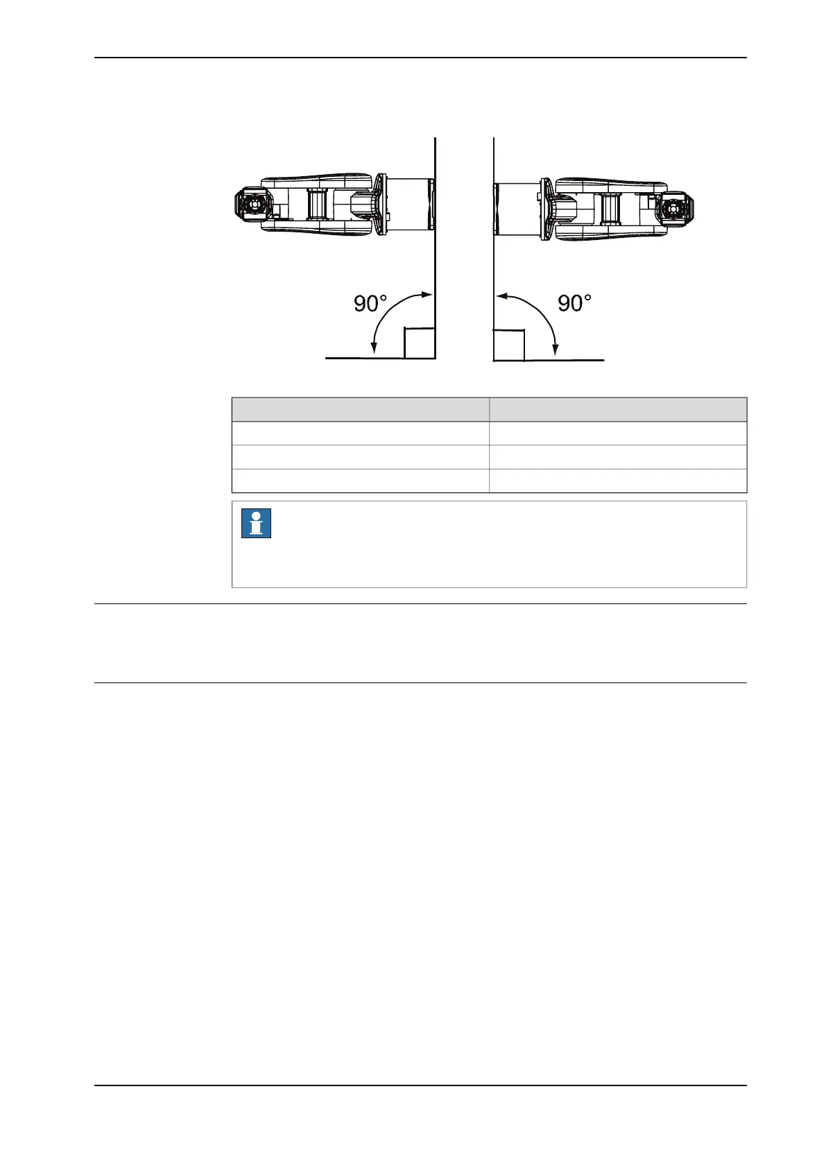 If mounting the robot on a wall, the working range of axis 1 is limited. These