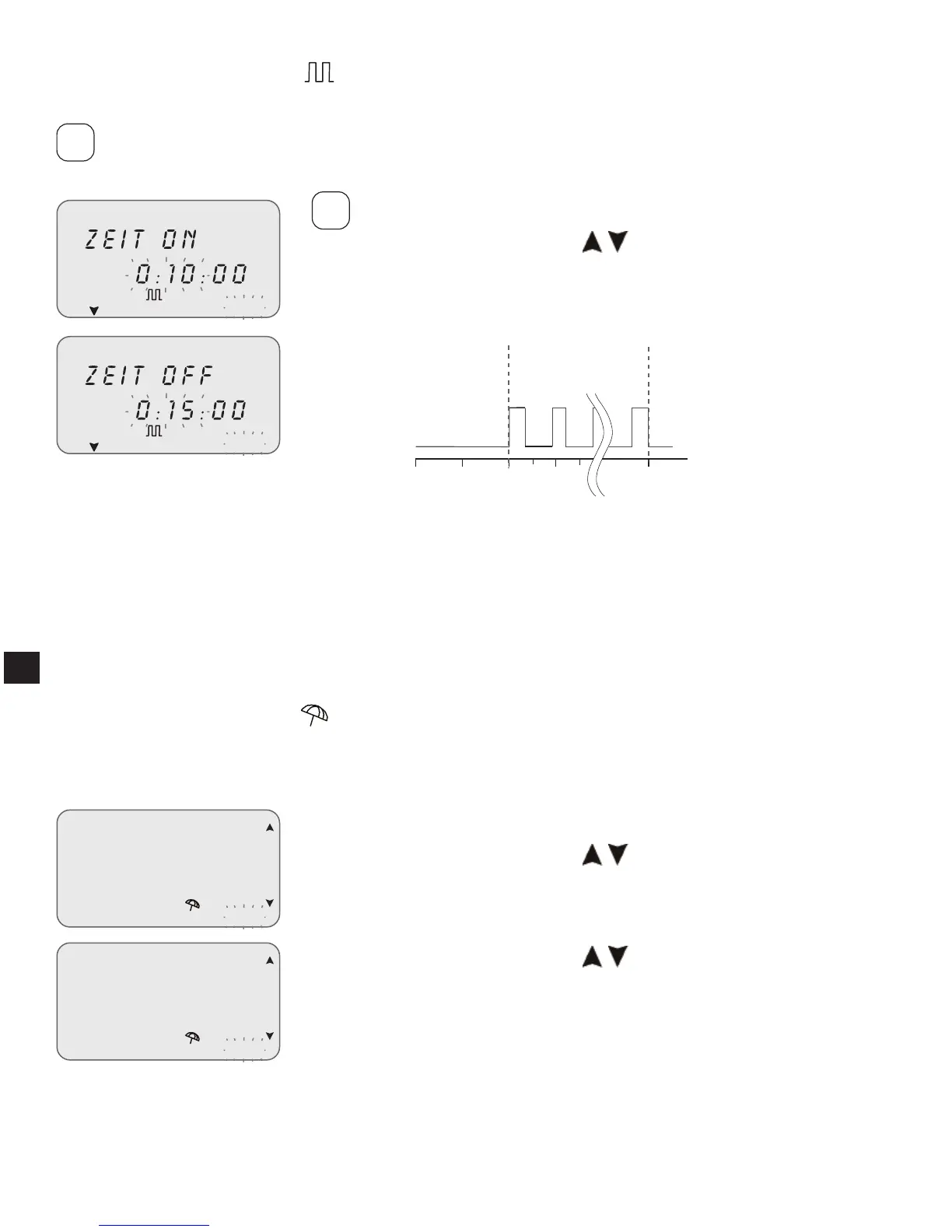 Verzögerungszeit: ZEIT ON 10 Min. und ZEIT OFF 15 Min.