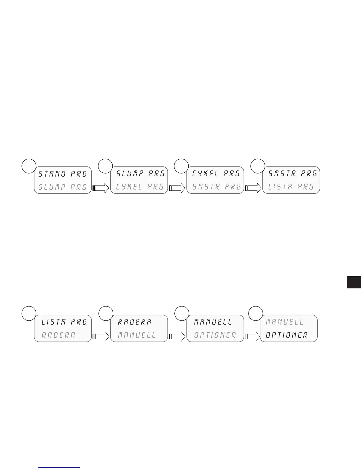Menyerna listas från 1 till 8 enligt den ordningsföljd de har i apparaten.