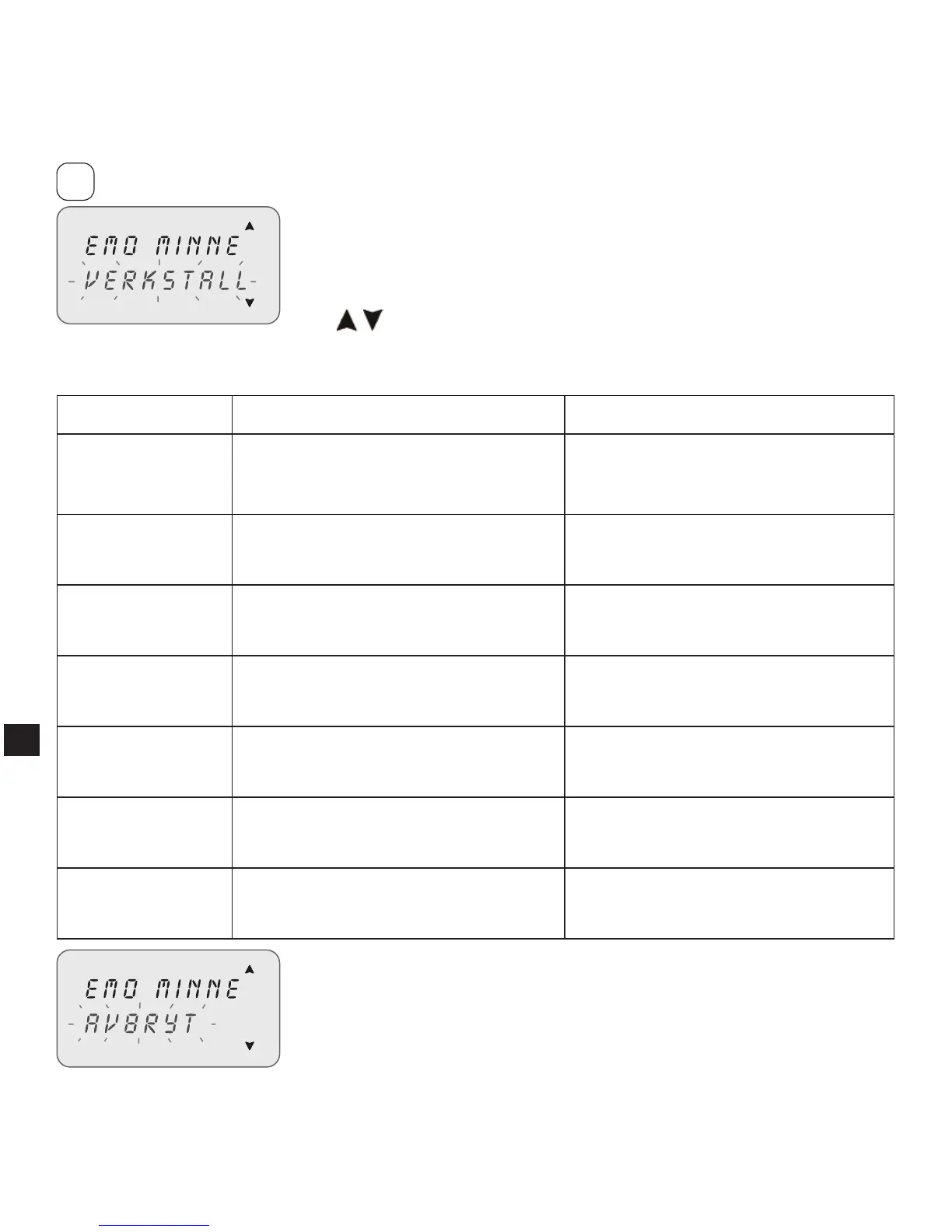 Välj önskad undermeny (se tabellen) med knapparna 2.