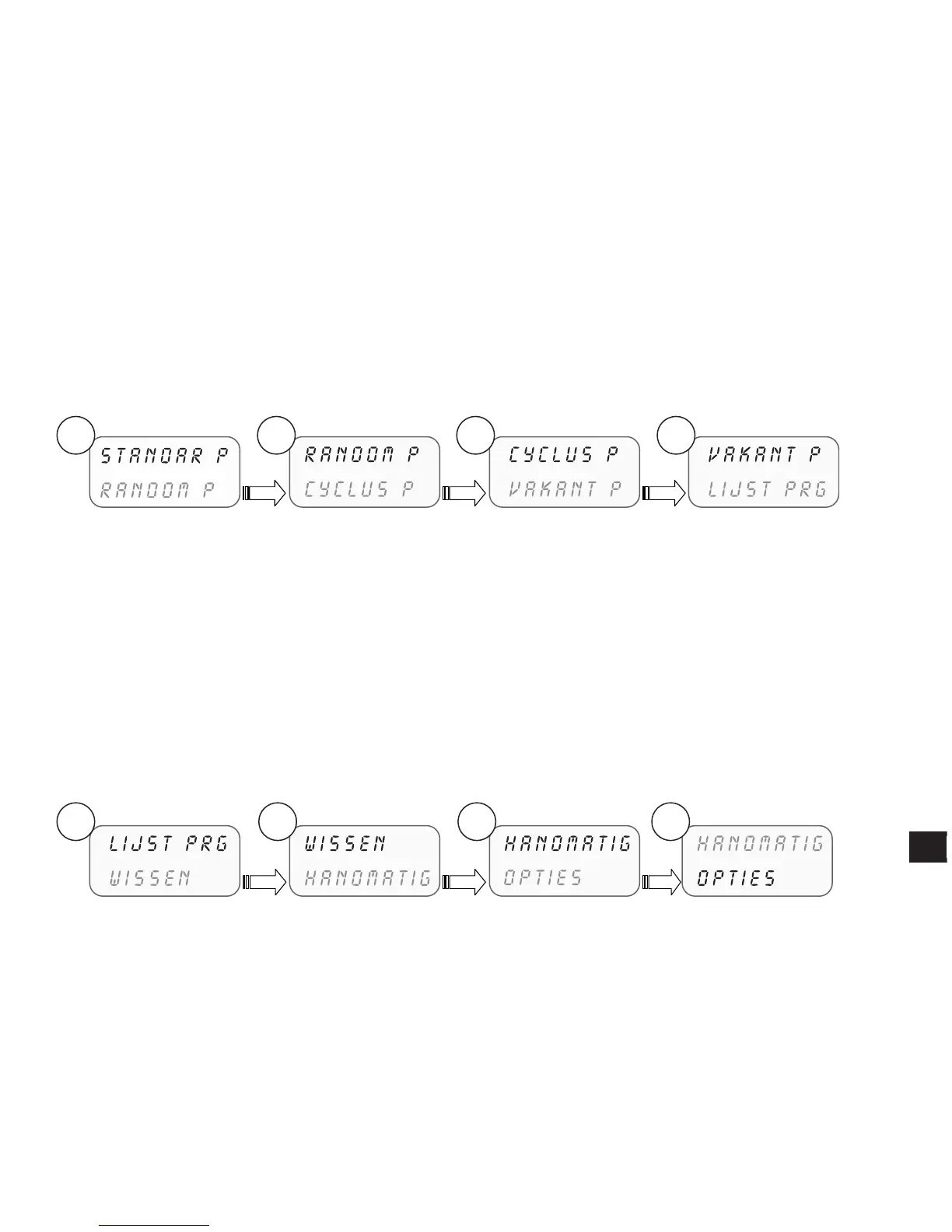De lijst van de menu’s 1 tot en met 8 zijn in die volgorde aanwezig in het apparaat.