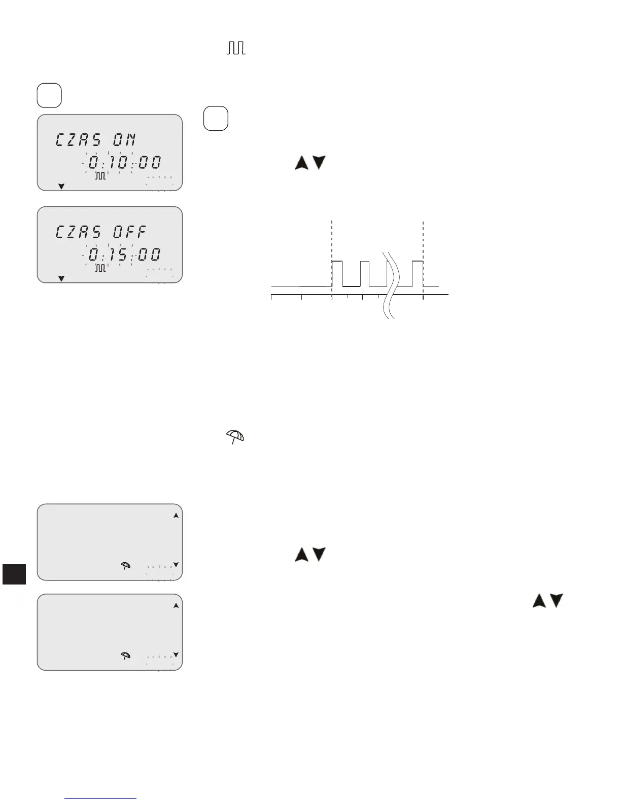 Regulacja czasowa CZAS ON 10 min i CZAS OFF 15 min.