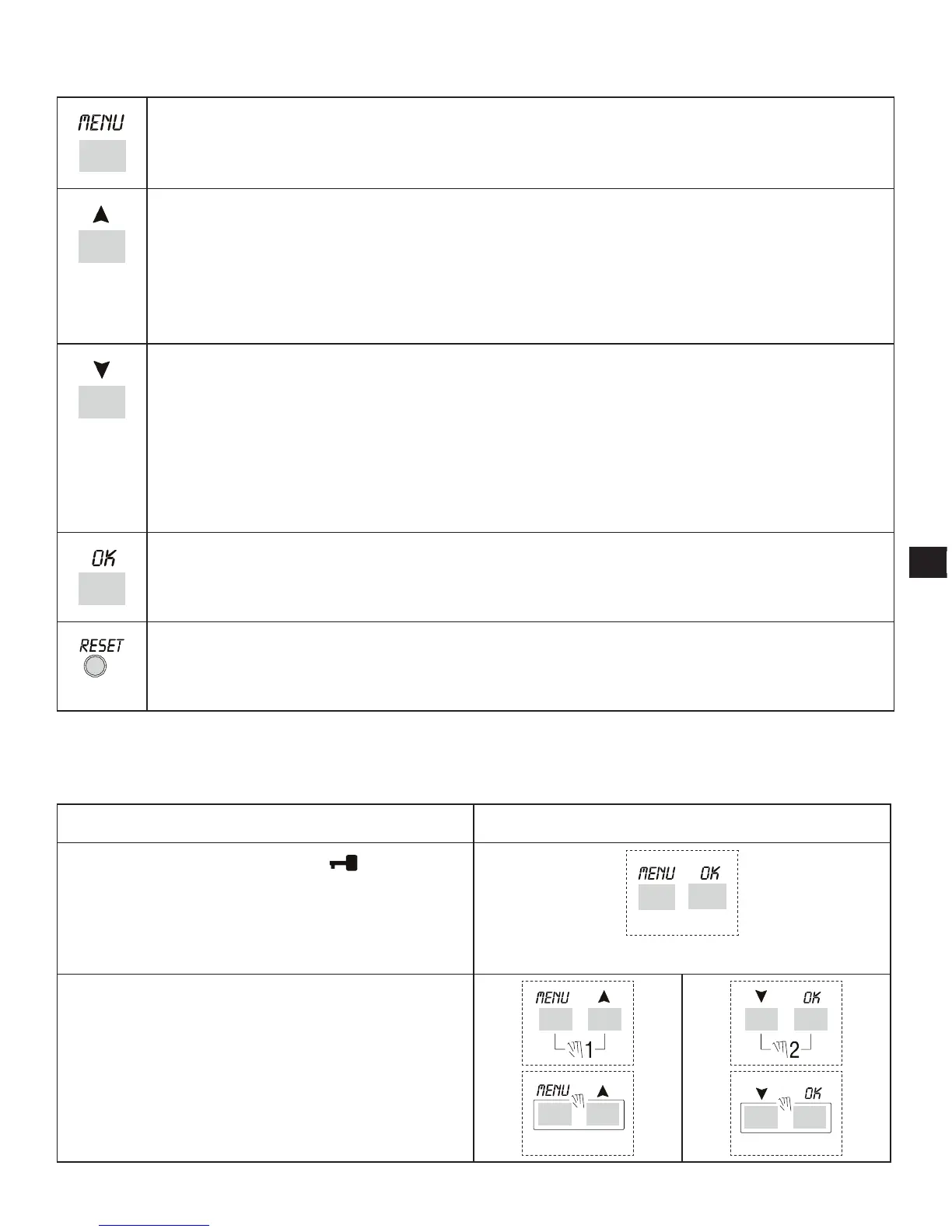 canale 1 fino al rilascio del tasto (in normale funzionamento).